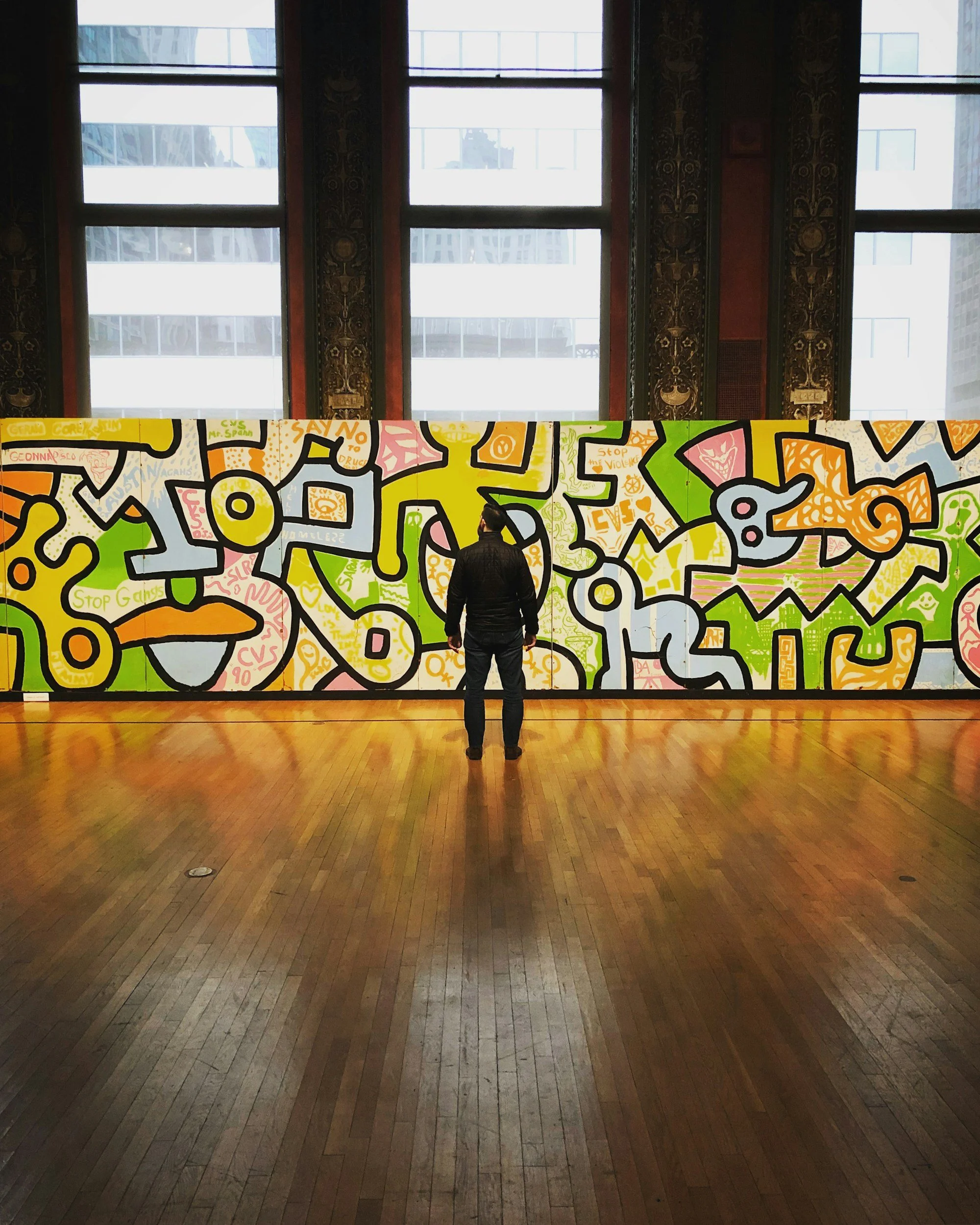 This is why a seemingly simple piece in a museum can make someone say, "My 5-year-old could do that!" — while there's tremendous unspoken intention beneath the color choices, the composition, the history of the moment in which it was made. Take Keith Haring, who grew up right here in our corner of Pennsylvania. His work is bold, graphic, joyful — almost cartoonish. And he used that playful visual language to address some of the most serious topics of his time: AIDS, apartheid, racism. The silliness and the seriousness coexisted completely. That's what intention does.