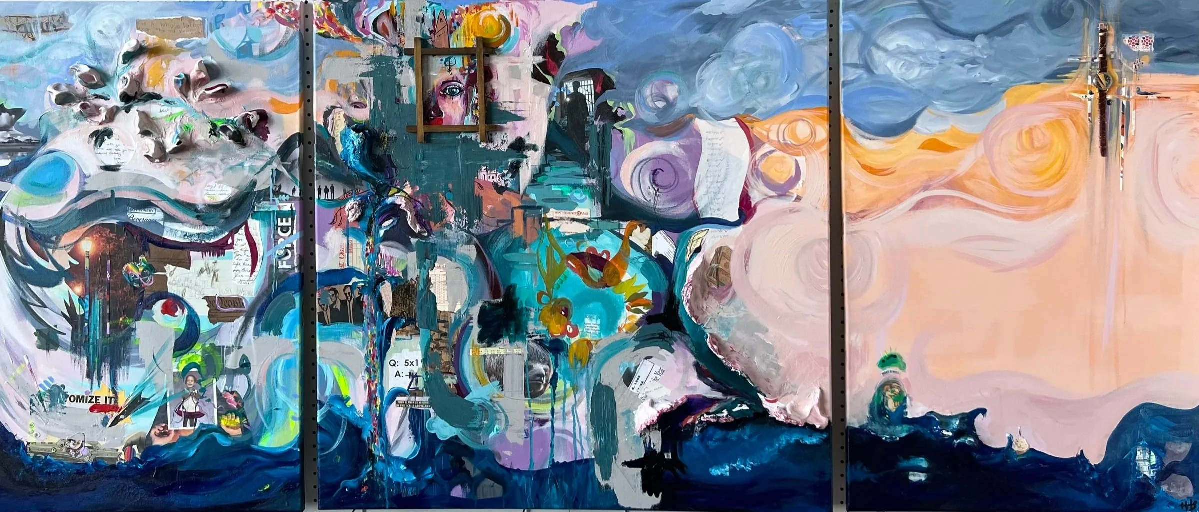 I've felt this tension in my own practice. I once took a class called Find Your Joy, where in one exercise, we made free marks to music. It felt forced, and the results were messy in a boring way — not the good kind of messy. But later, alone in my studio with the doors shut, I made a large triptych using collage, clay, paint, and found objects. My only intention was to reflect my own creative growth over time — kind of how I became me — using abstraction, scraps friends and family had sent me, and remnants from my childhood home. I wasn't making it for anyone but myself. People still walk into my studio and marvel at that piece. Some want it for their home. Some say it belongs in a gallery. The difference between the forced play and the real thing? I actually cared about the second one. It was me, on a canvas.
